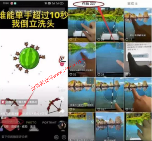 然后可以看下,他在这一个月内总共发了条作品,也就相当于每天发七八条作品,做游戏发行人项目想赚钱,要么就作品质量高,少而精条条爆,但看他发的作品点赞量就知道他走的并不是精品路线。为什么会拿他的这个做案例呢,因为他足够勤快,做不了精品就做量,每天坚持发七八条,