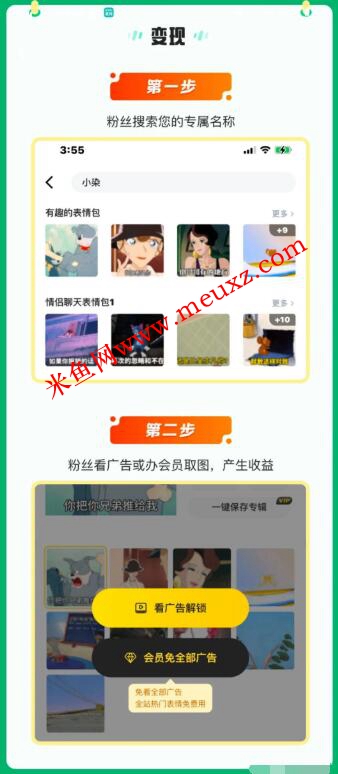表情包是一个老项目了,但是这次的玩法跟之前的又有一点点不一样。以前的抖音表情包项目都是通过分享表情包,引流到微信或者公众号拿图,然后通过会员/会费售卖表情包赚钱。