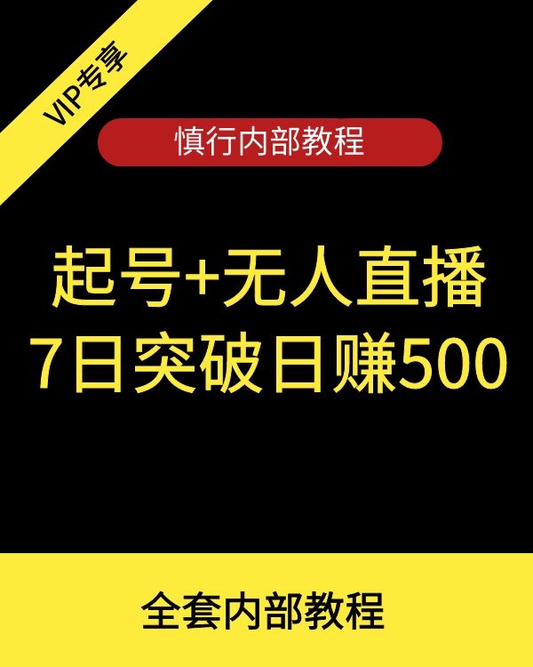 慎行内部教程,起号+无人直播 7日突破日赚500
