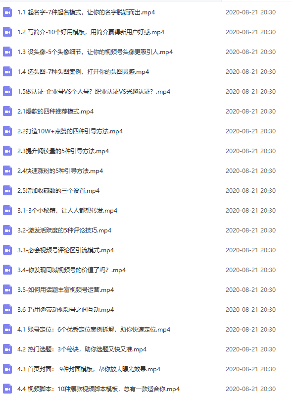 微信视频号从0到1基础全套课程,个人建议,从第2-1开始观看。以下是课程列表